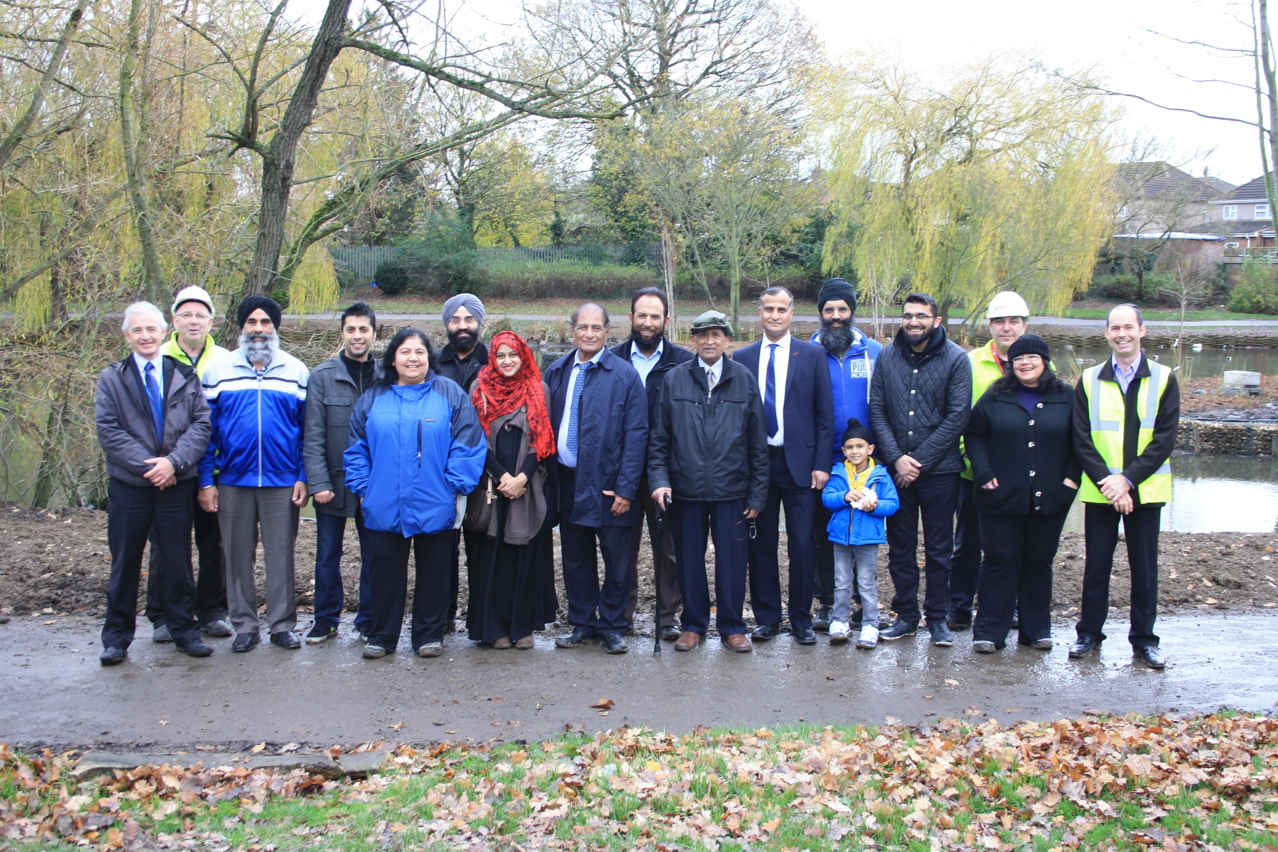 Cllr Satpal Parmar, who turned on the tap to start filling the pond said: